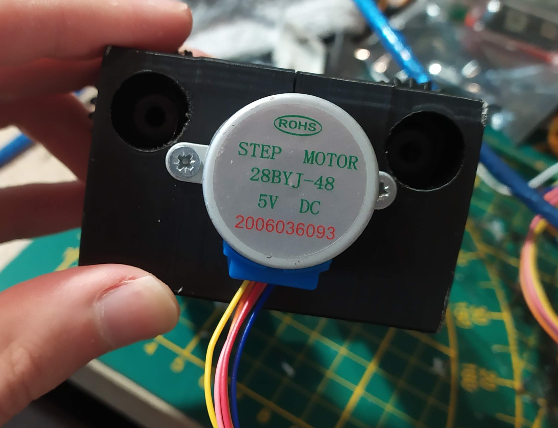The next option was to mount the spindle motor on my Creality CR-10 S 3D printer, so I made a 3D model and printed it. As you can see in the later pictures, this didn’t go well, so to save time I fixed the part and added reinforcements using a dedicated soldering iron at 200°C (PLA filament).